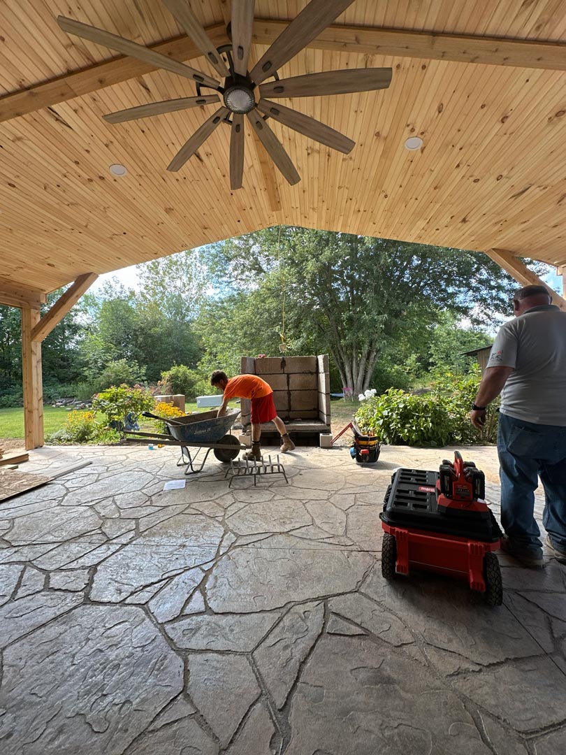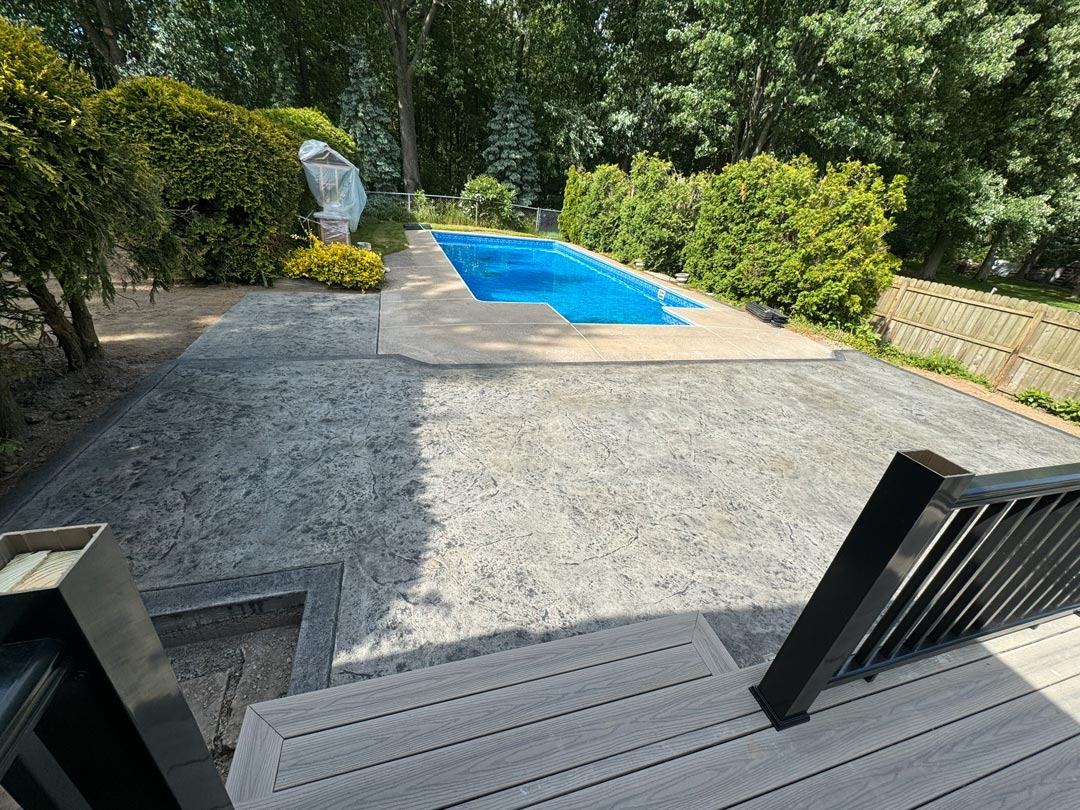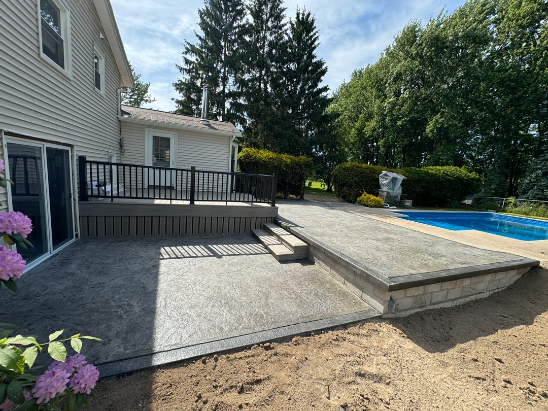 We frequently build patios using stamped concrete and other durable hardscaping materials, allowing for patterns and finishes that mimic stone, brick, or wood while remaining easy to maintain. Proper base preparation, drainage planning, and expansion joints are built into every project to help prevent cracking and uneven settling over time.